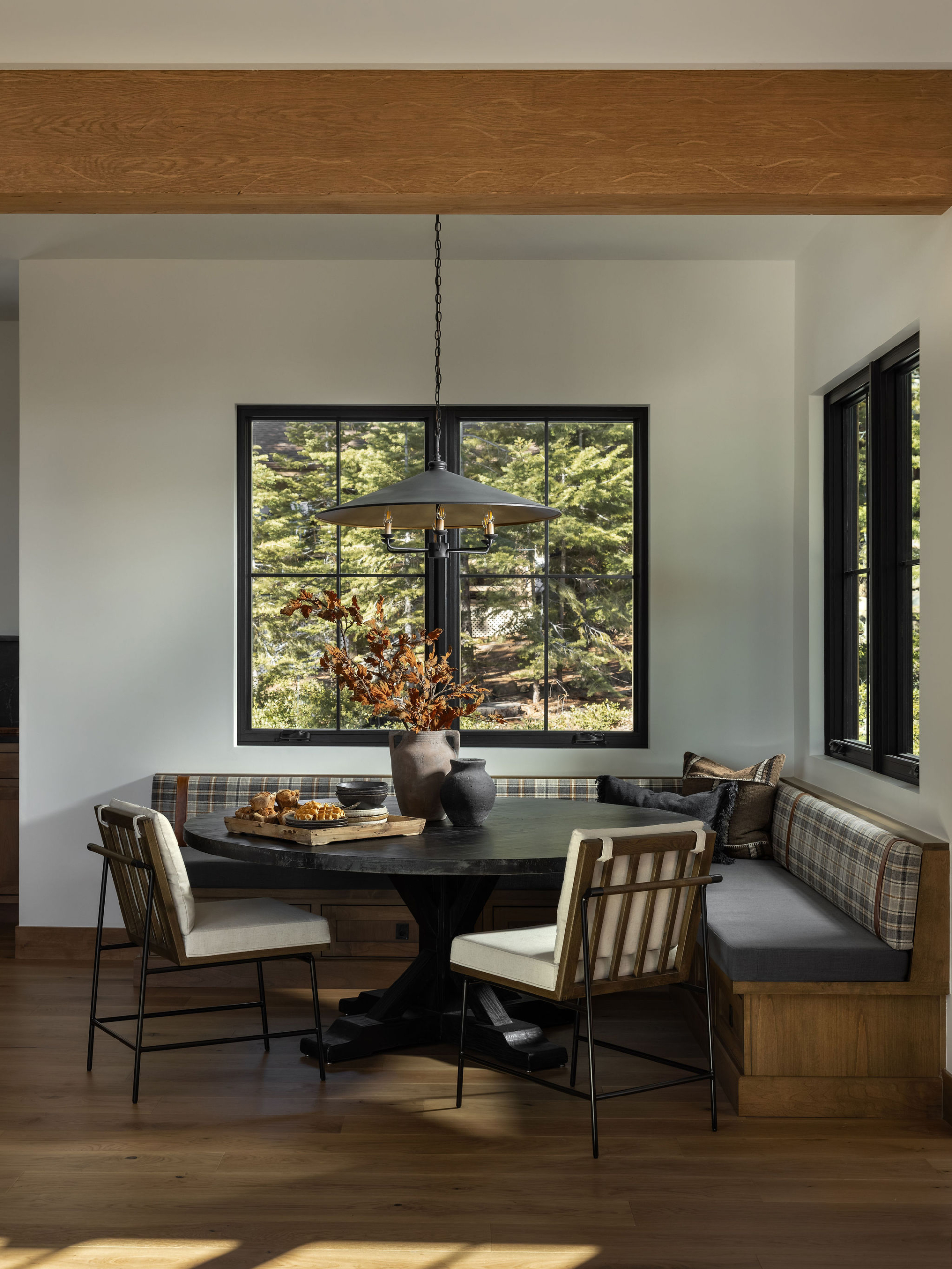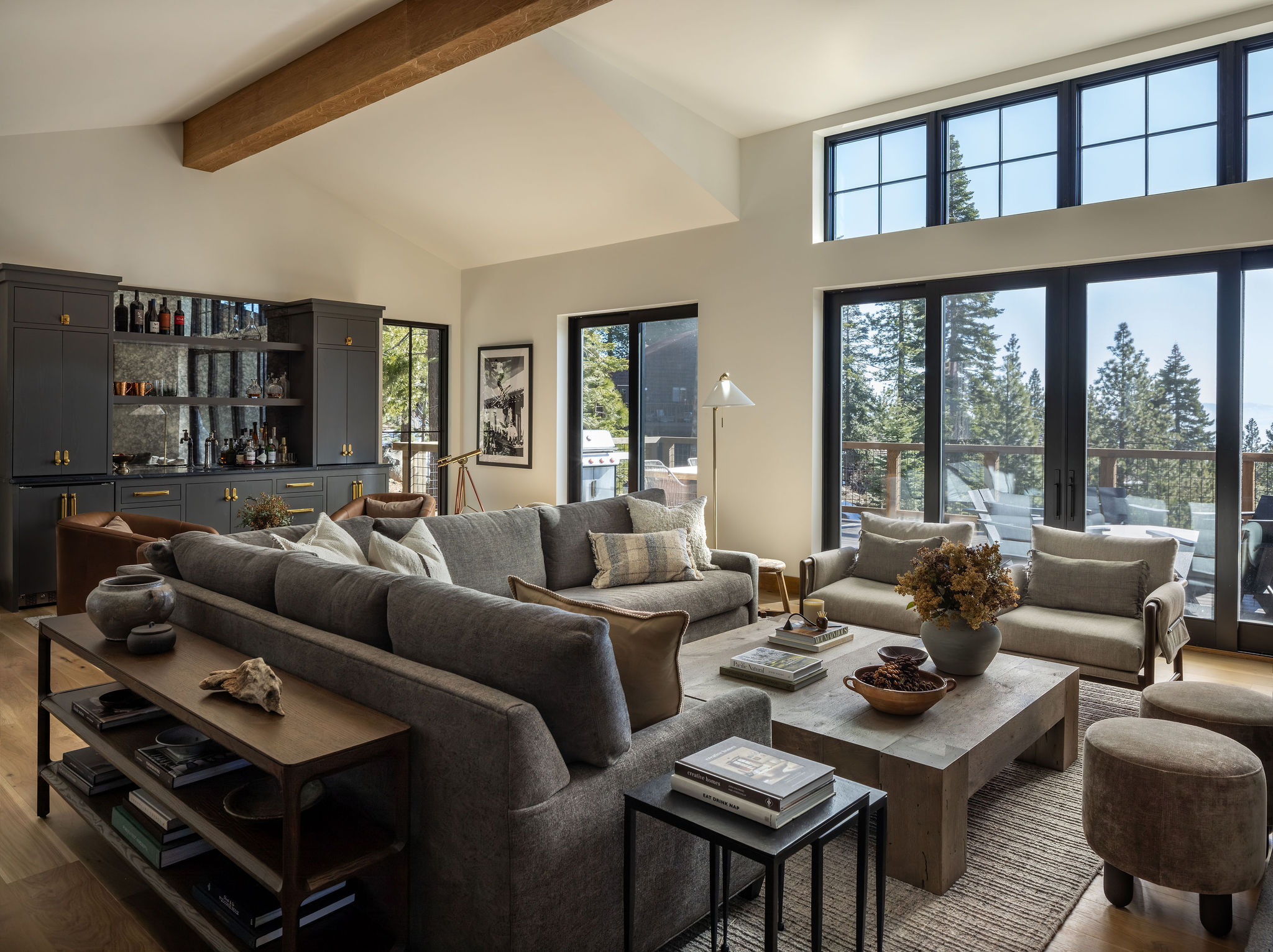 Bluebird Mountain House is a modern Tahoe retreat layered with refined Craftsman-style detailing, thoughtfully designed with its mountain and lake landscape in mind. Clean lines and tailored millwork establish architectural structure, while earthy materials and natural textures ground the home in its surroundings. Durable surfaces and a thoughtfully open layout support large family gatherings and frequent entertaining, creating a home that moves seamlessly from quiet retreat to lively hosting.